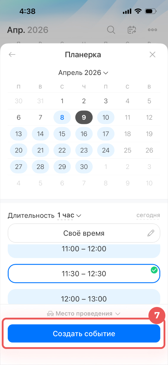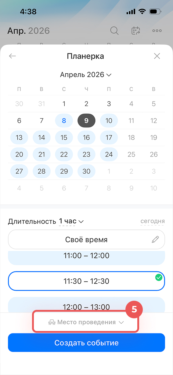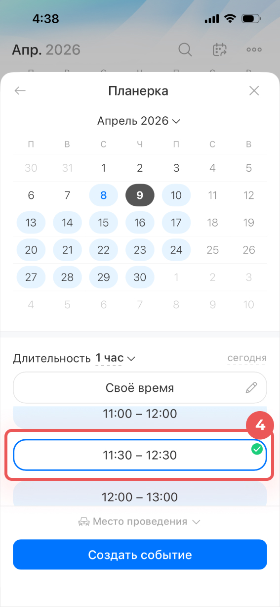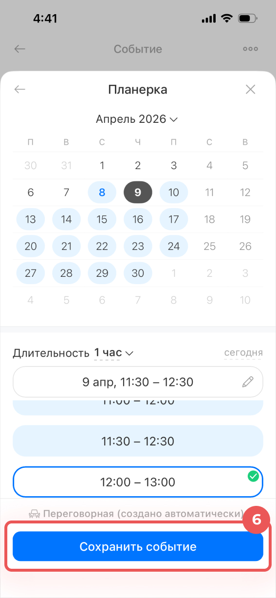 Выбрать время и забронировать переговорную