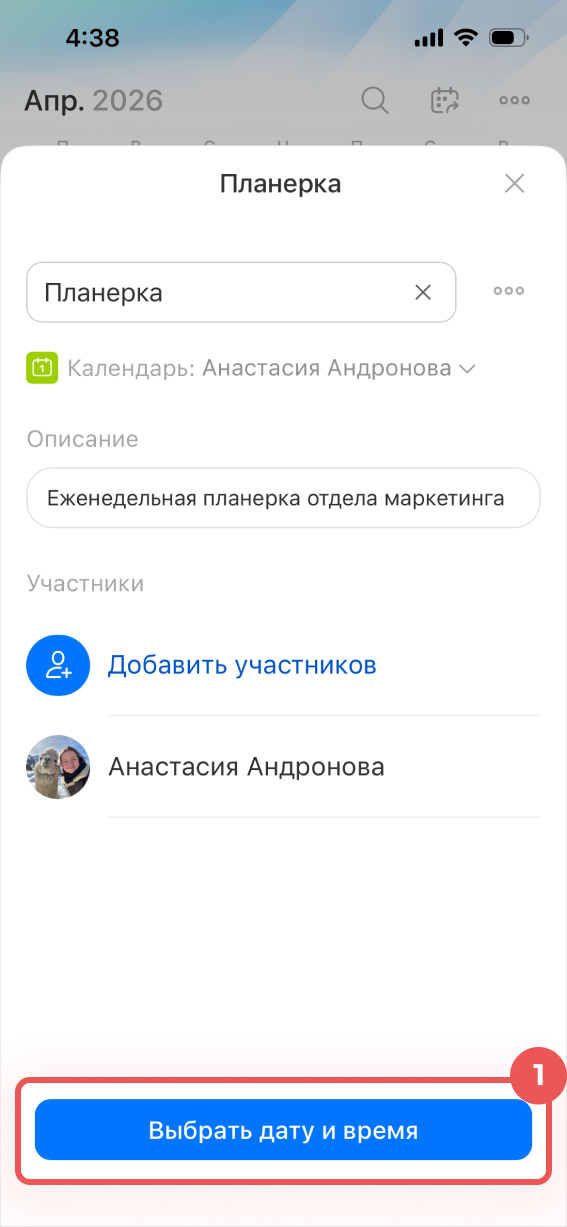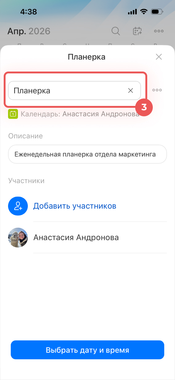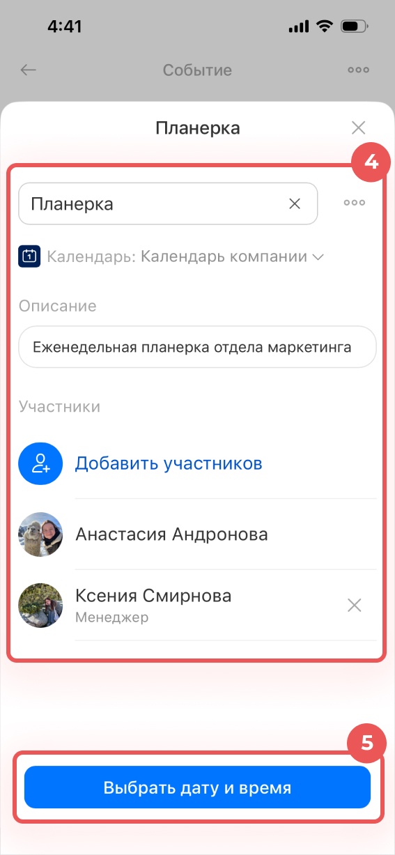 4–5. Внесите нужные правки и нажмите Выбрать дату и время.