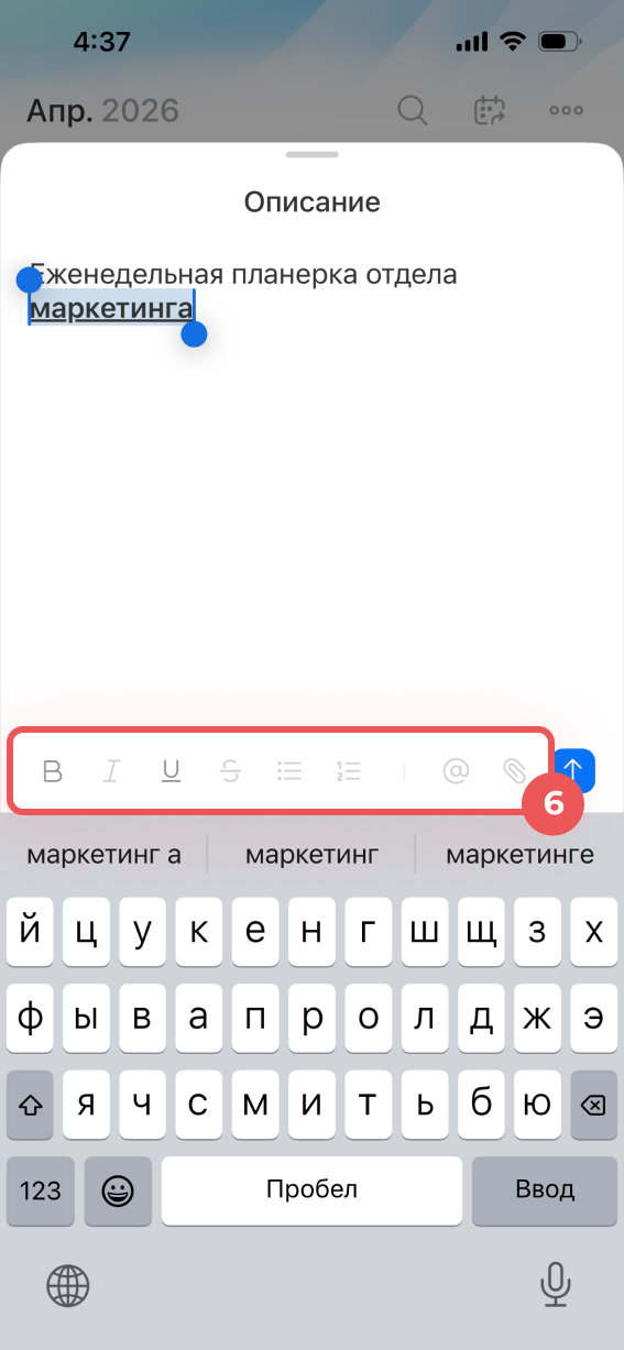 - Текст можно форматировать: в нижней панели редактора доступны жирный, курсив, списки и другие инструменты.