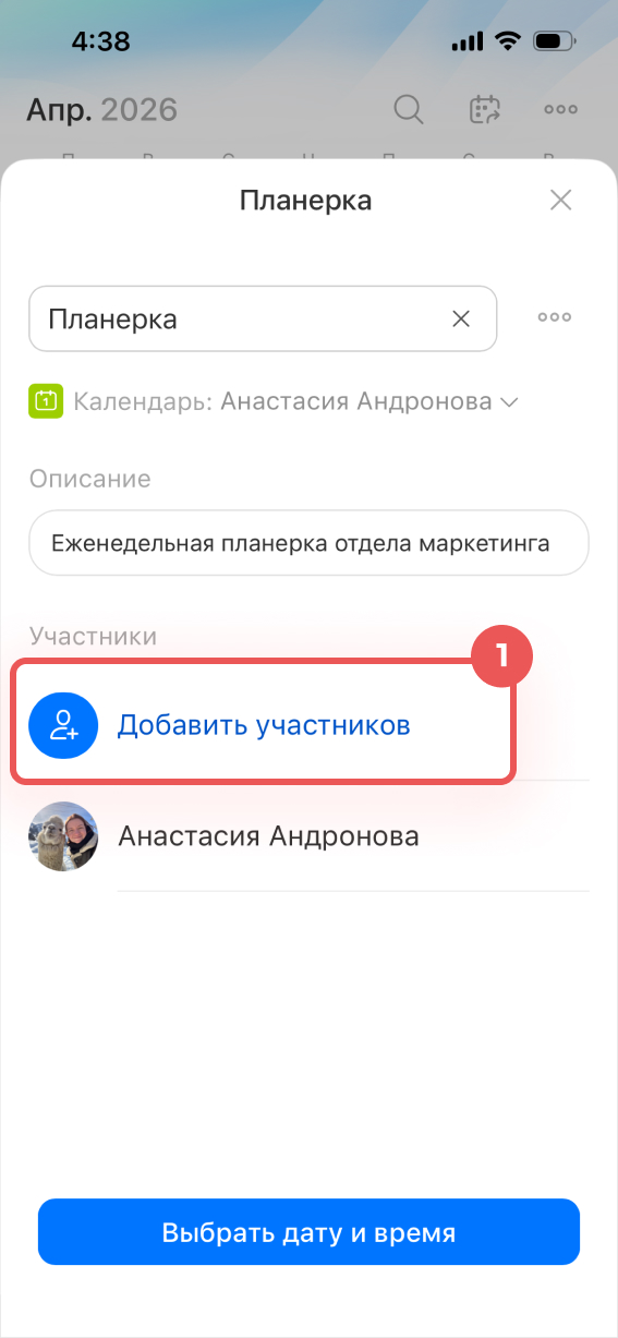 Добавьте участников, чтобы событие появилось в их календарях и они получили уведомление о встрече.