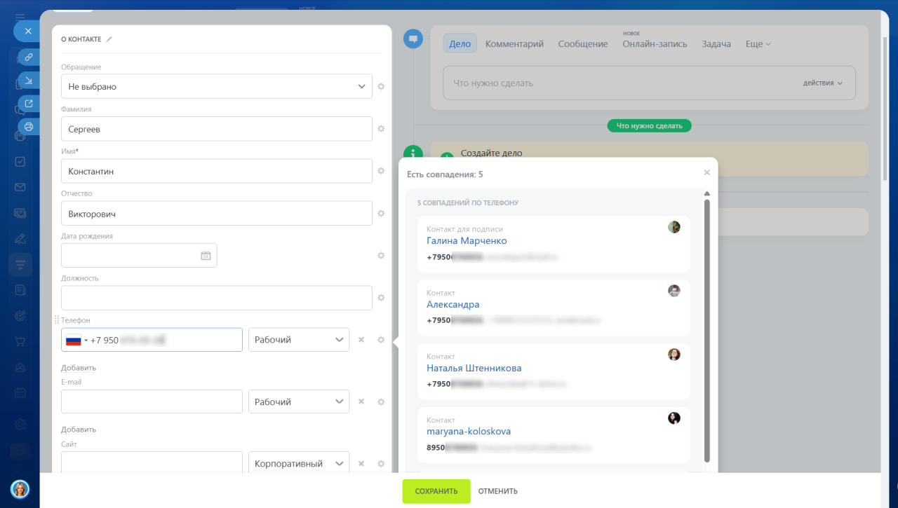 Настройка, которая включает поиск дубликатов в CRM и помогает поддерживать базу клиентов в актуальном состоянии.