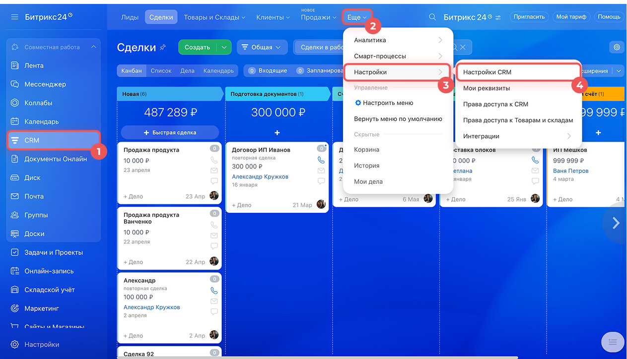 В статье расскажем, как настроить подразделы CRM:
