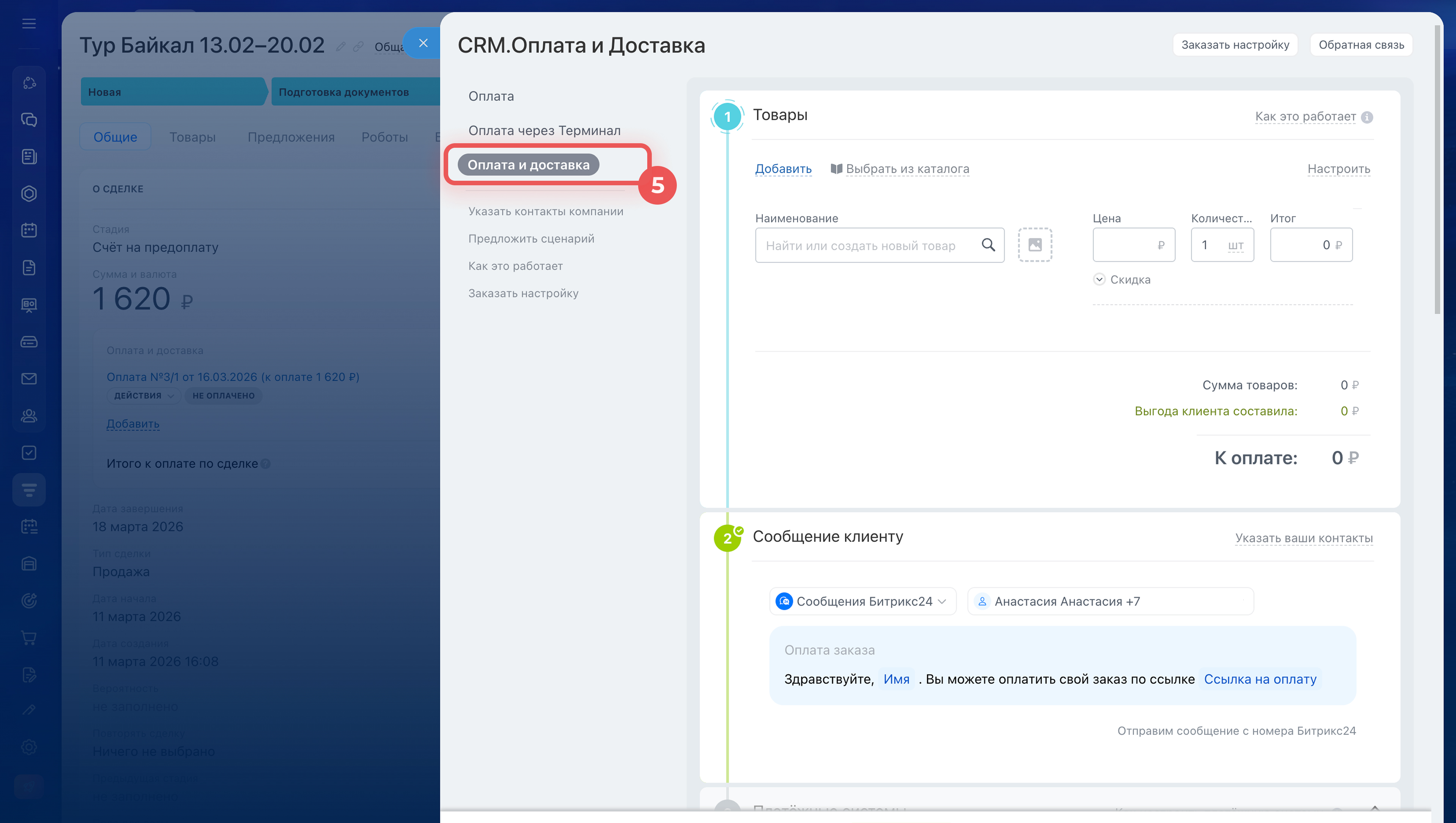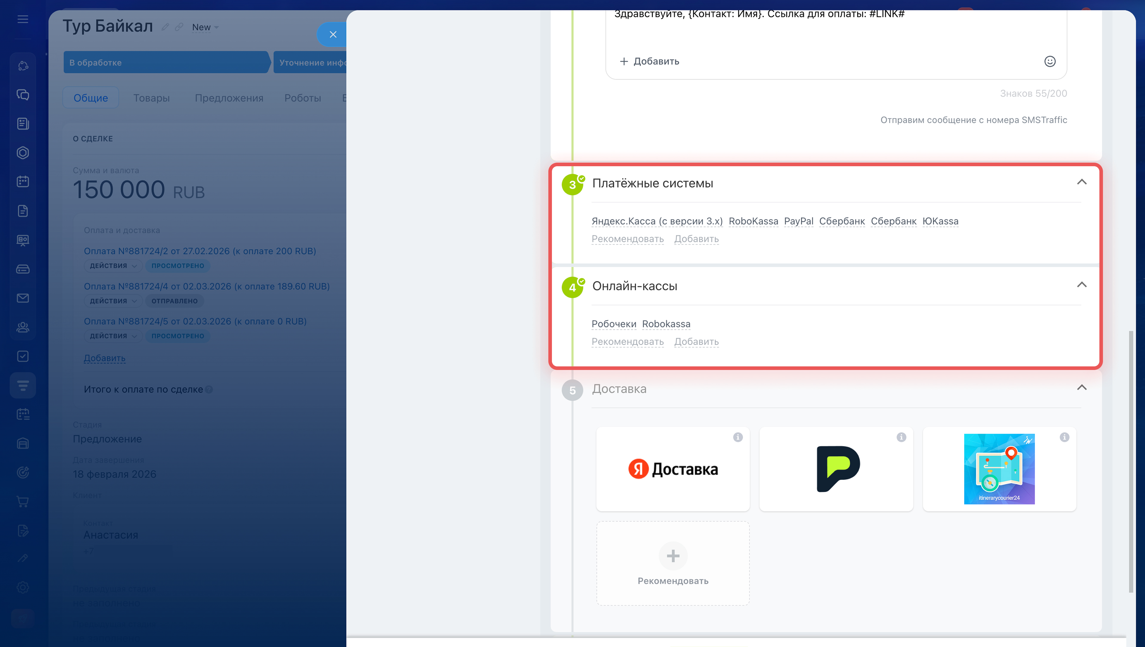 5. Выберите сценарий CRM. Оплата и доставка.