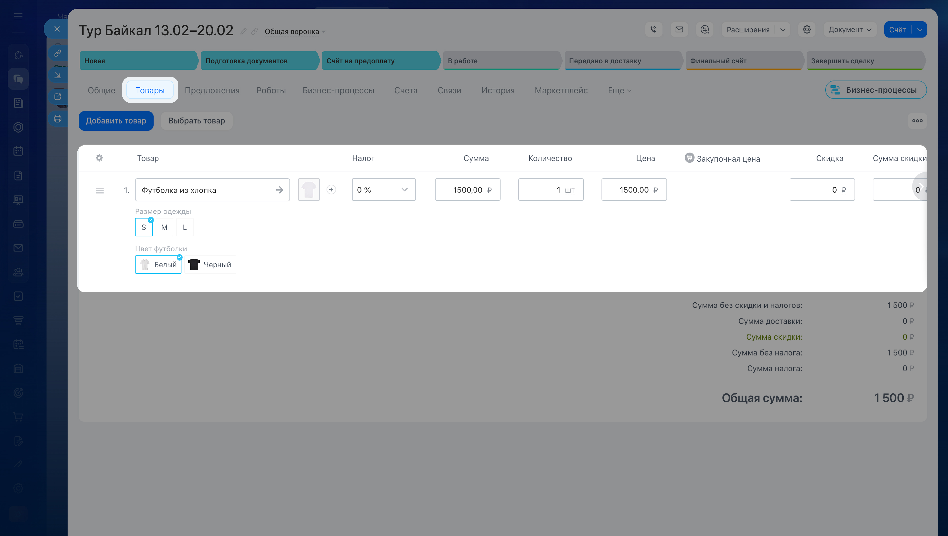 Как добавить товары в карточку CRM