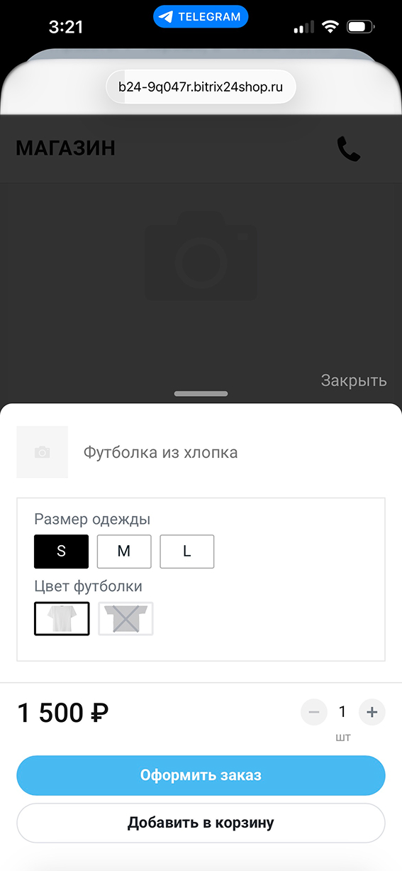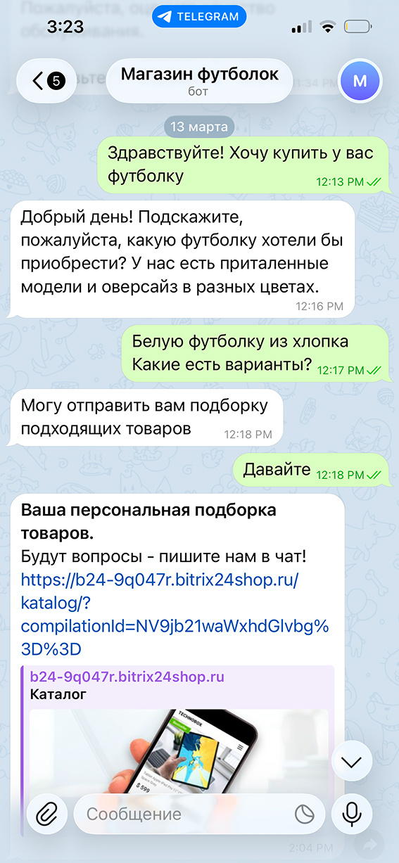 Например, клиент ищет белые футболки. Менеджер собирает несколько моделей в подборку и отправляет ссылку. Клиент открывает ее, смотрит все варианты на одной странице и выбирает подходящие.