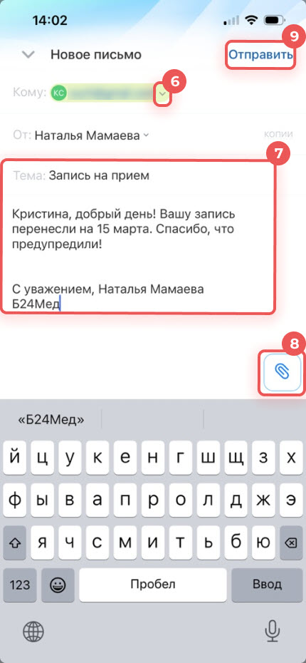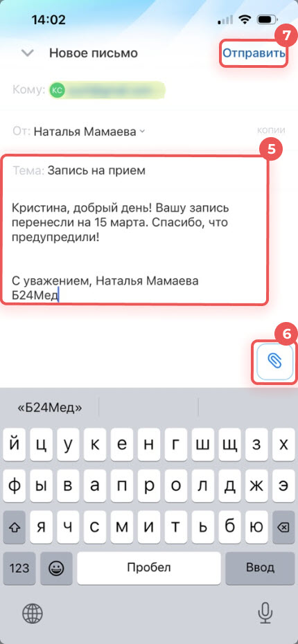 - Нажмите на электронную почту клиента — откроется окно для создания письма.
