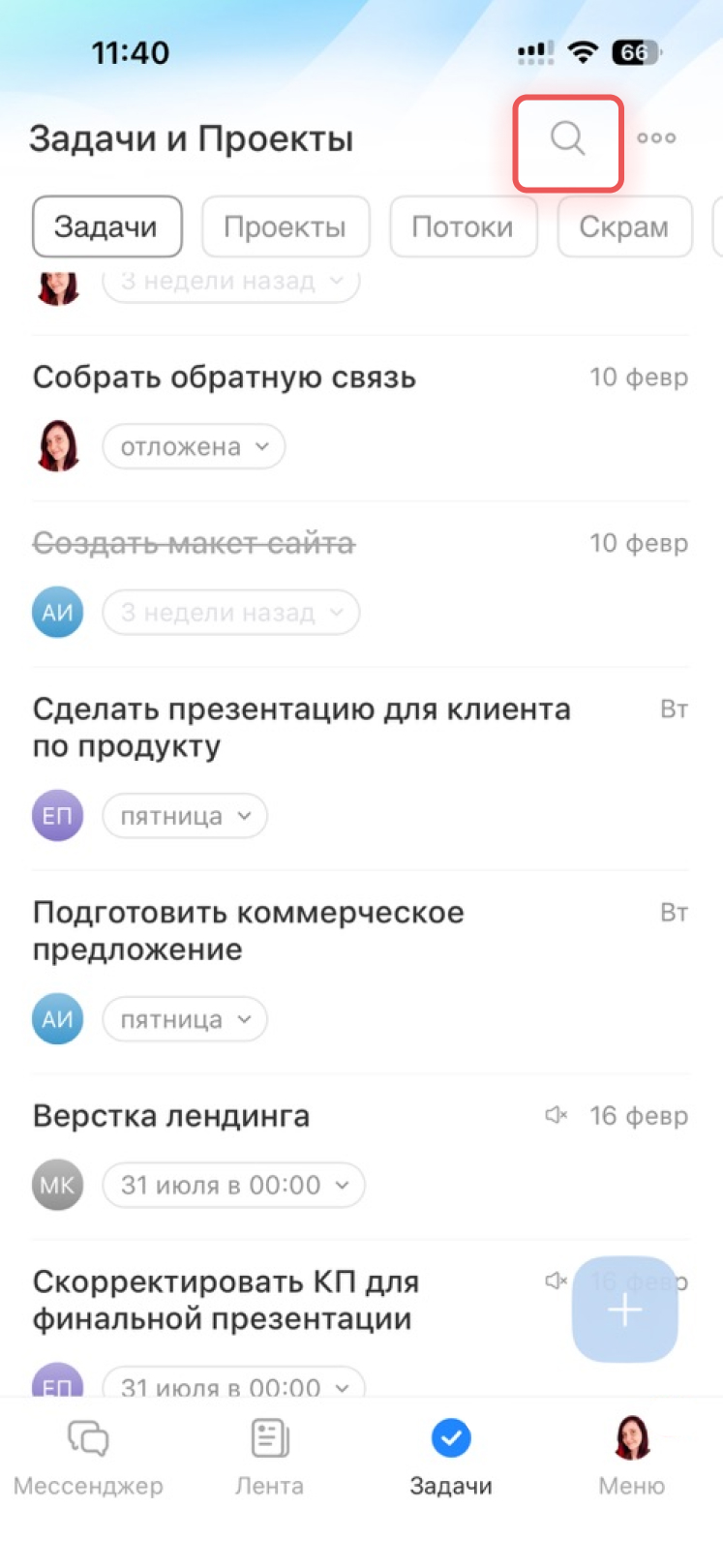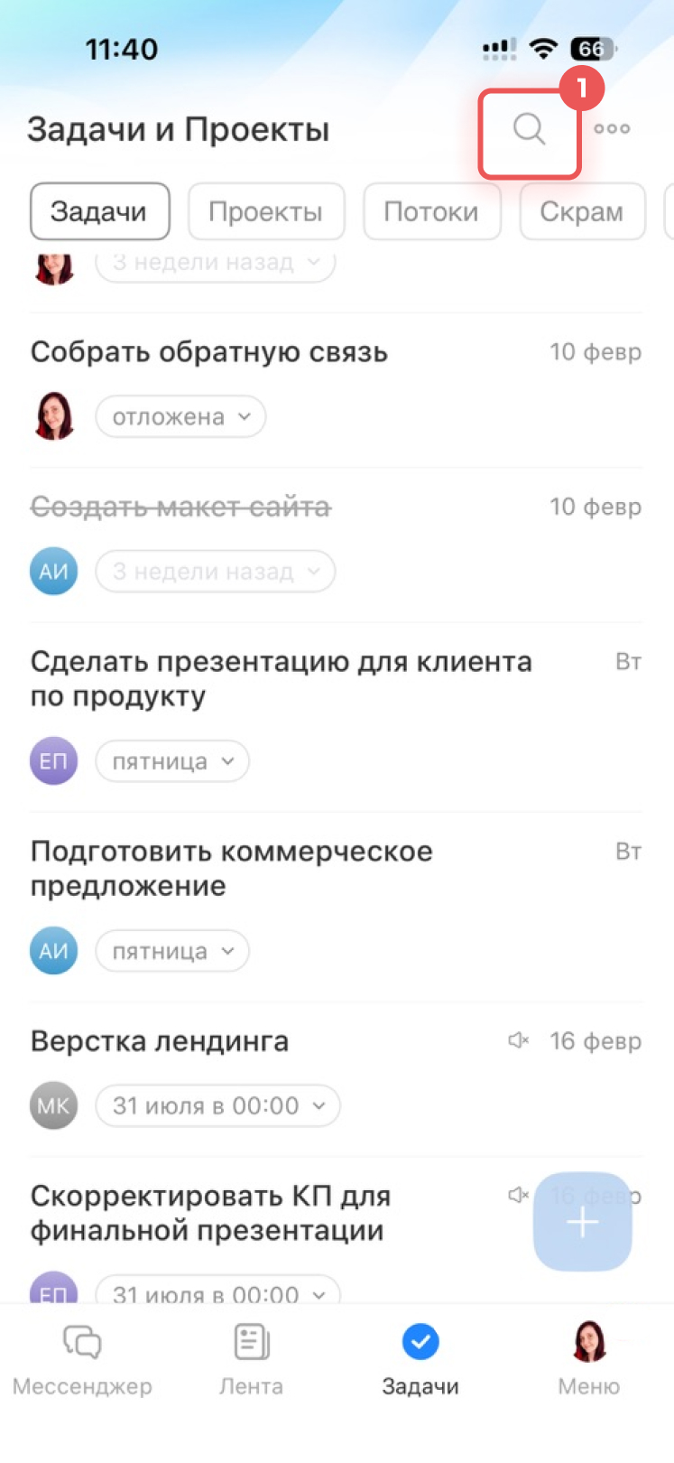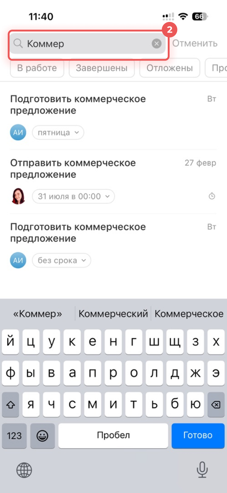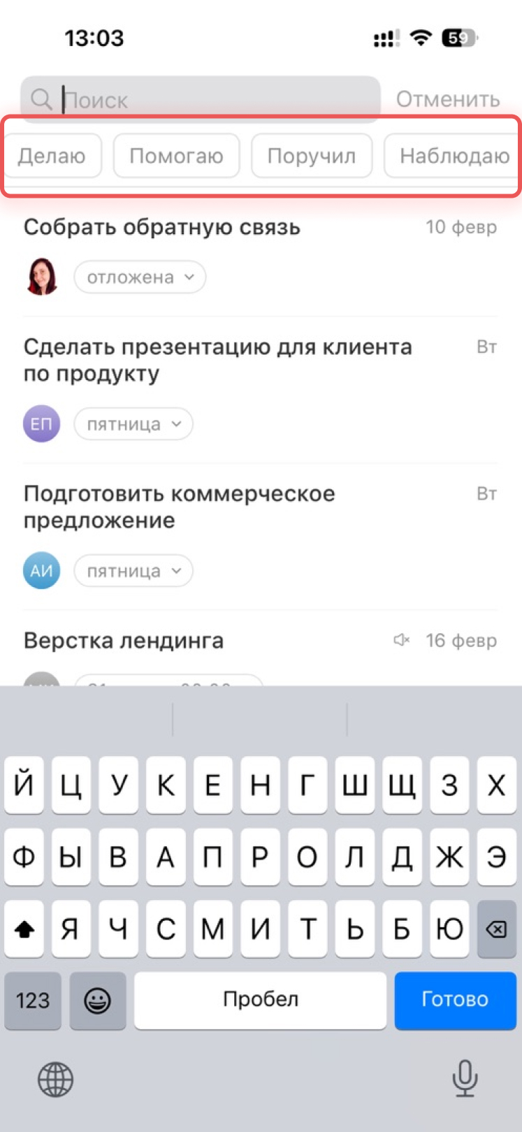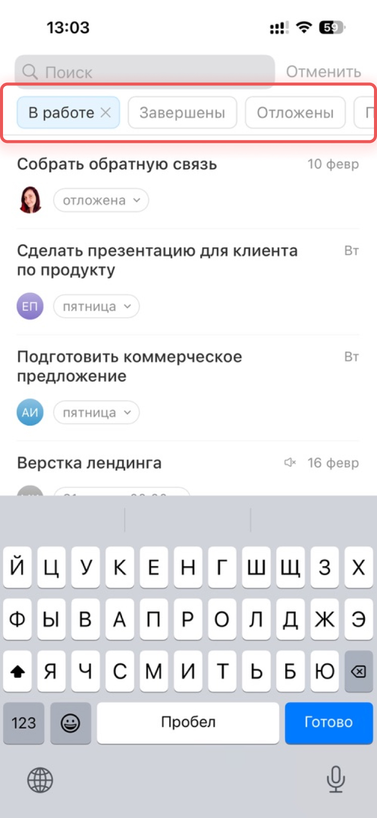 Когда задач становится много, важно быстро ориентироваться в списке. В мобильных задачах есть несколько способов поиска.