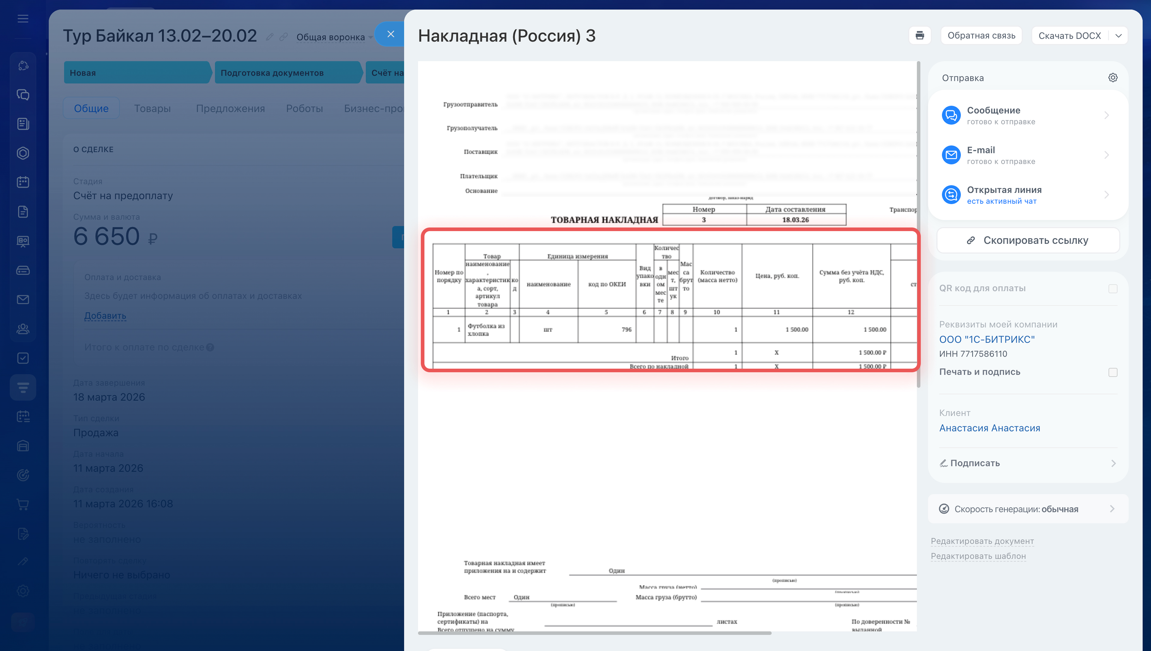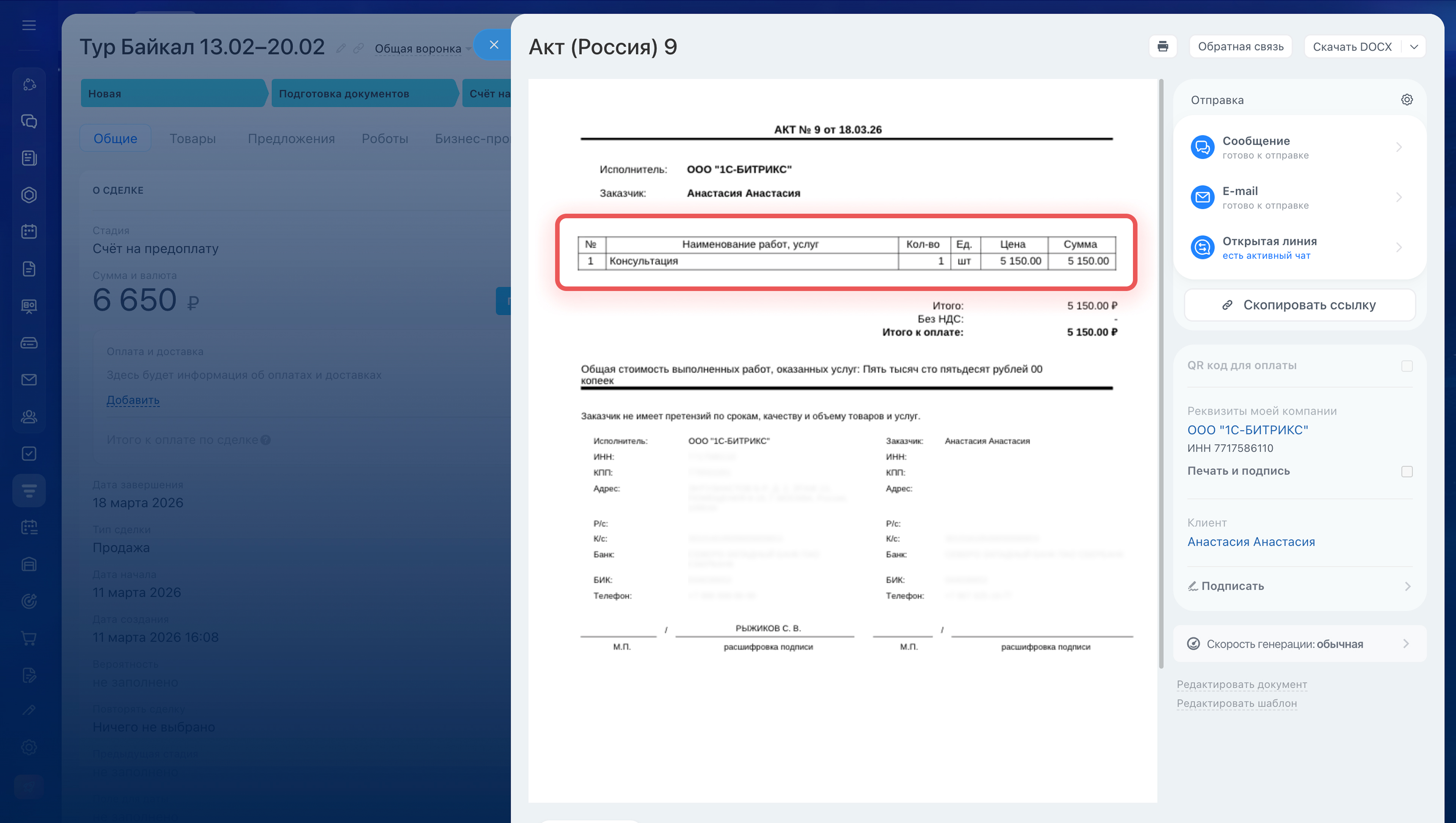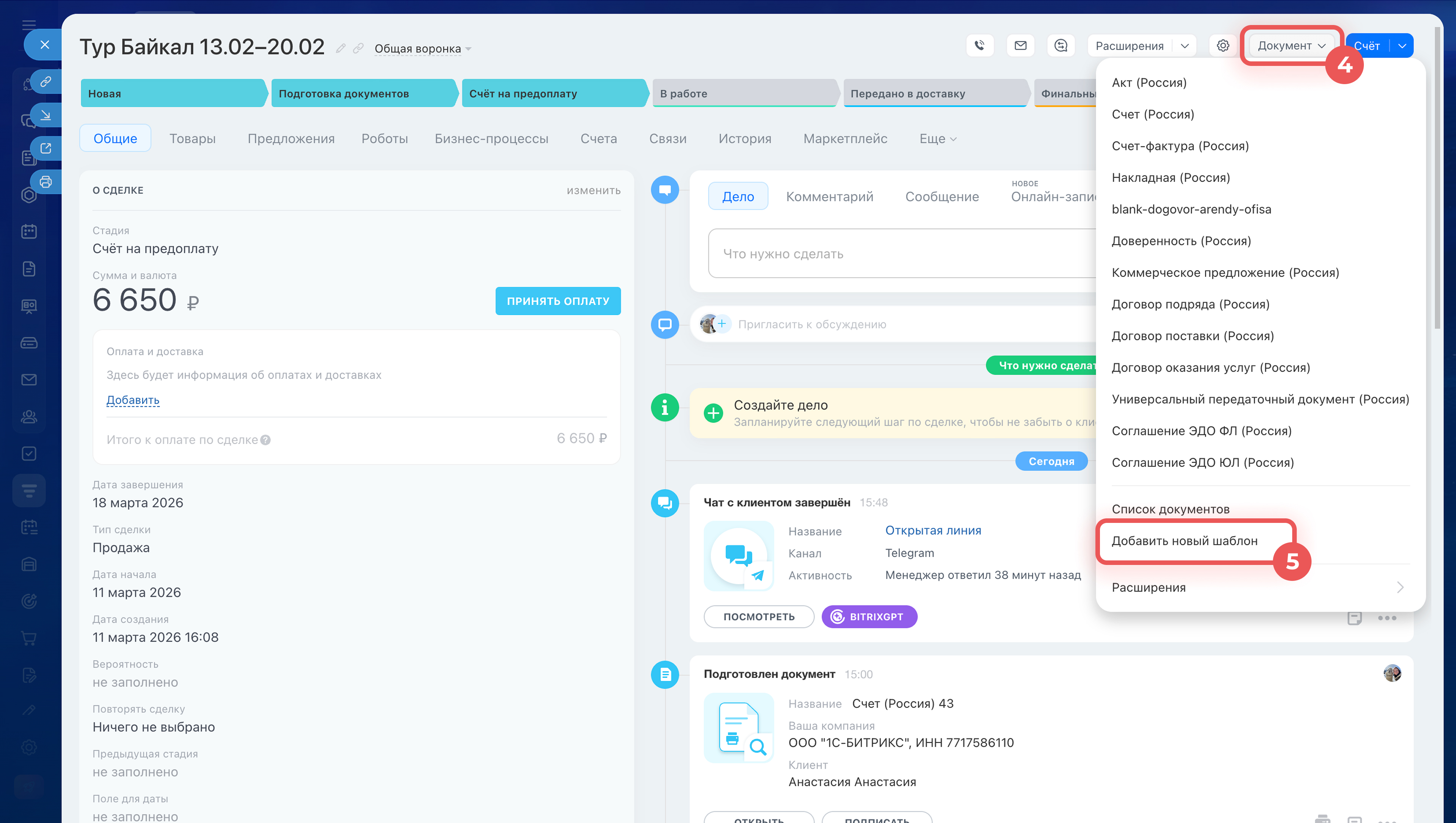 1–3. Перейдите в CRM > Сделки и откройте любую сделку.