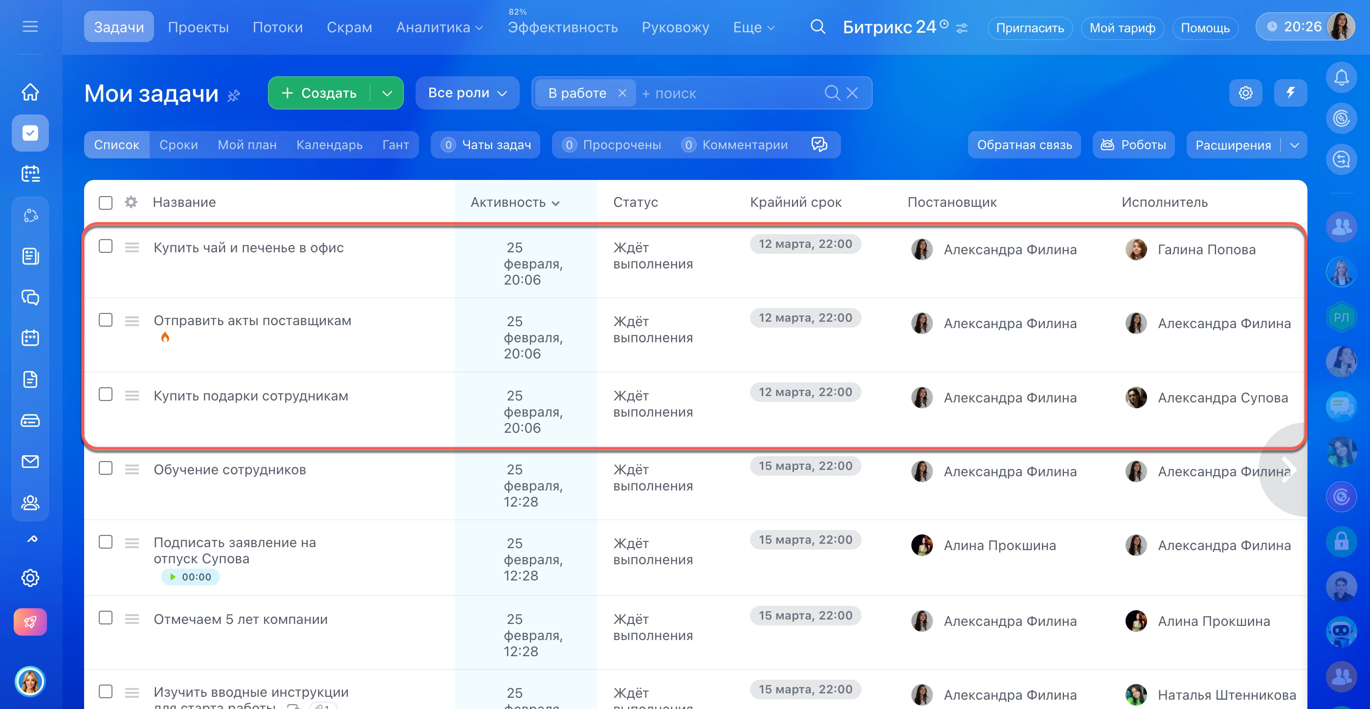1. Перейдите в раздел Задачи и проекты и выберите режим просмотра Список.