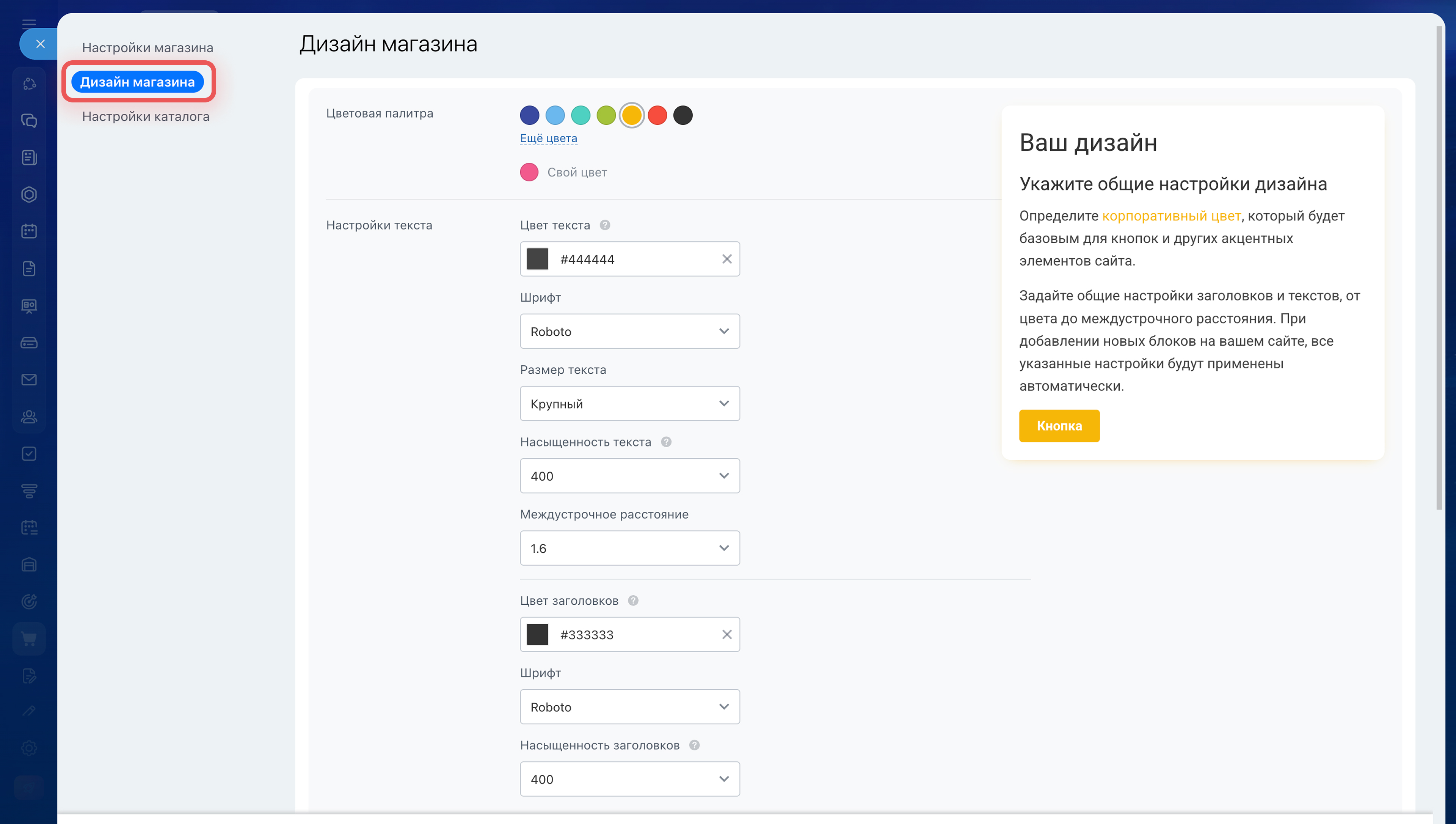 Дизайн магазина. В этом разделе можно настроить дизайн магазина, например: