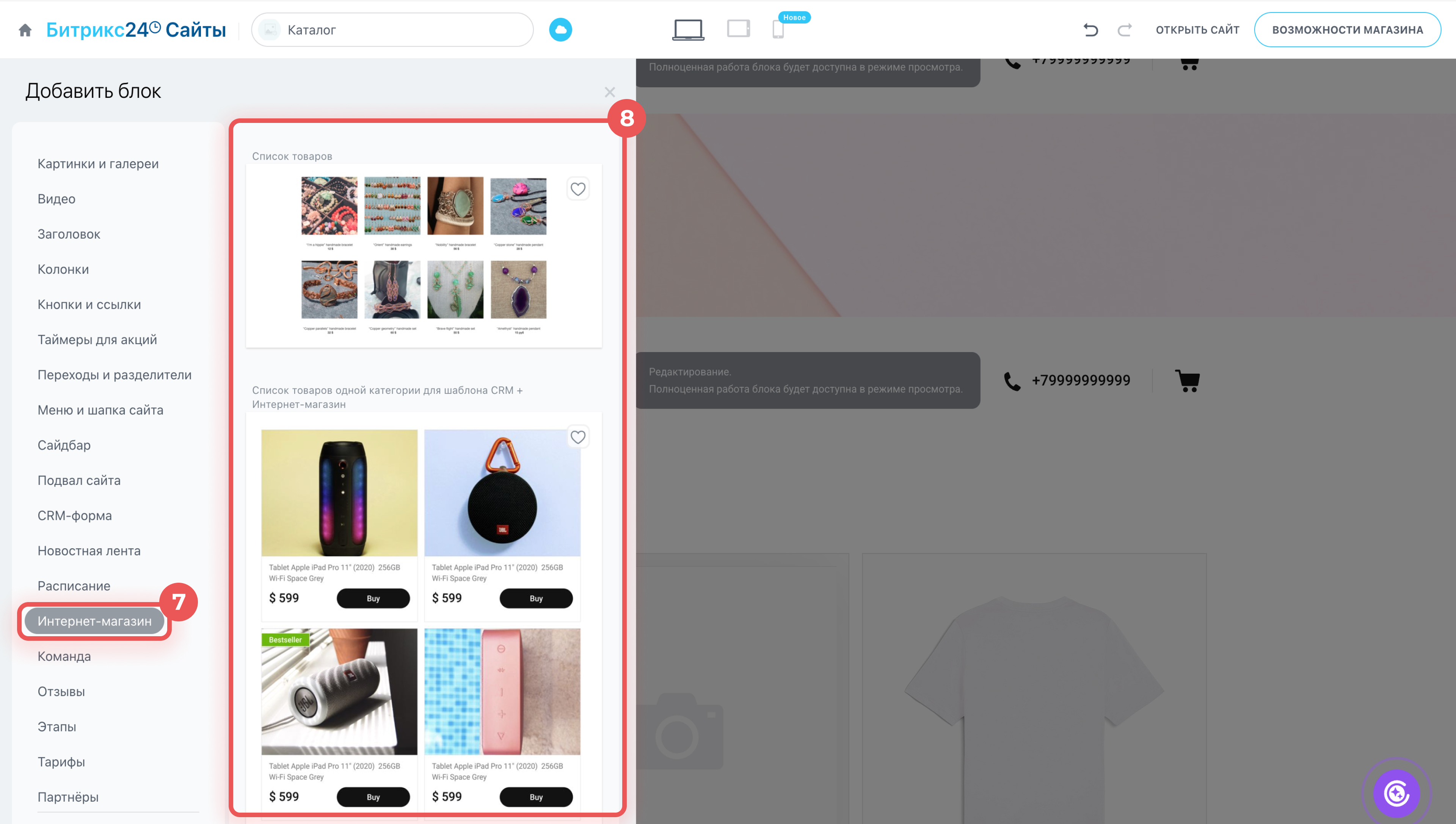 7. Перейдите во вкладку Интернет-магазин.