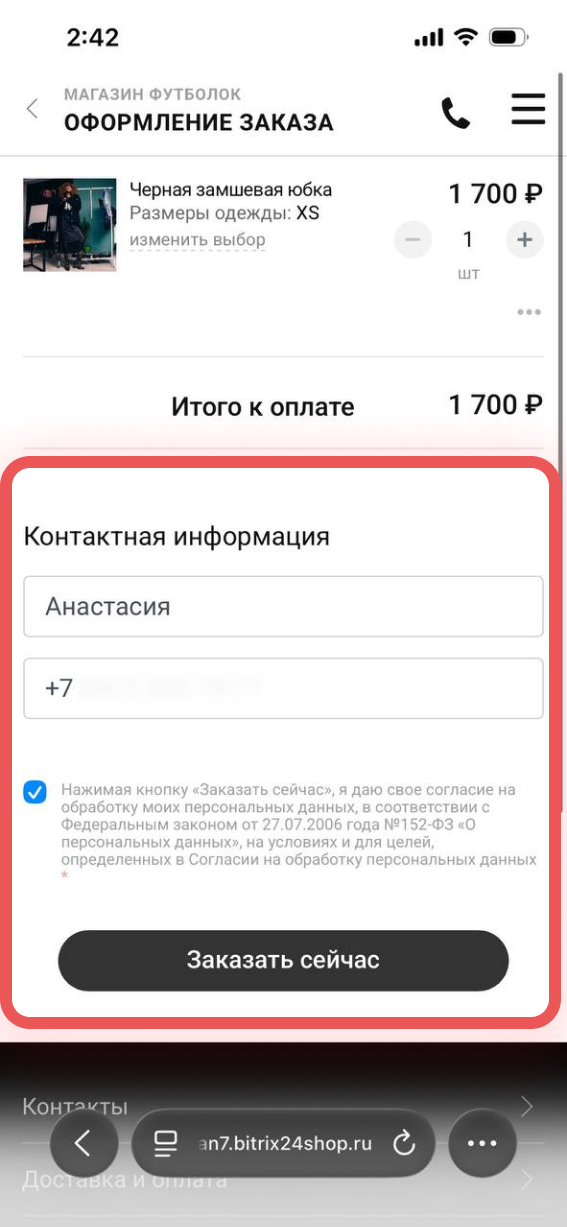 11. Проверьте, как клиент оформляет заказ. На мобильном телефоне: