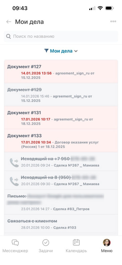 Мои дела в CRM