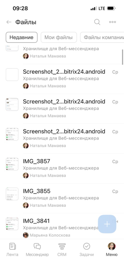 Файлы. В разделе можно работать с файлами на личном диске и диске компании. Например, просматривать и использовать эти документы в задачах, чатах и CRM.