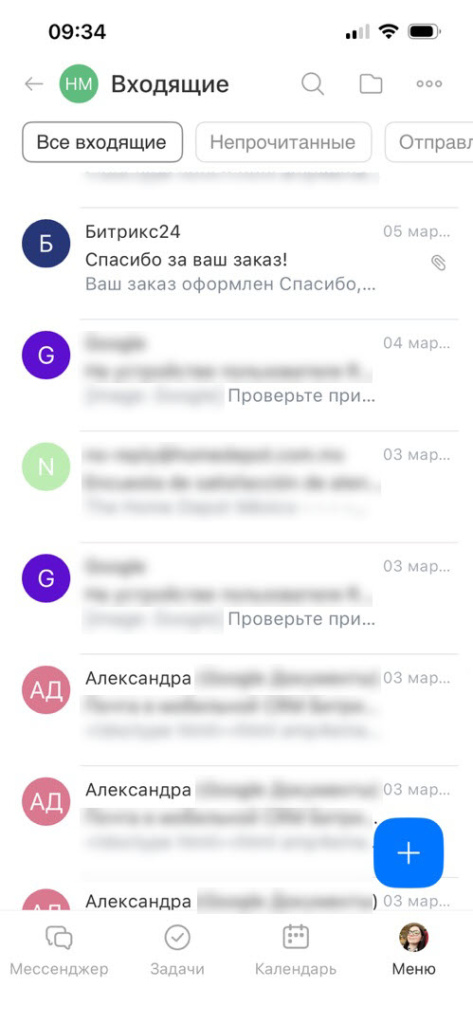 Почта в мобильном приложении Битрикс24