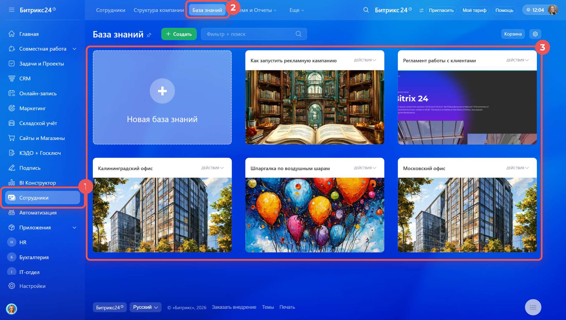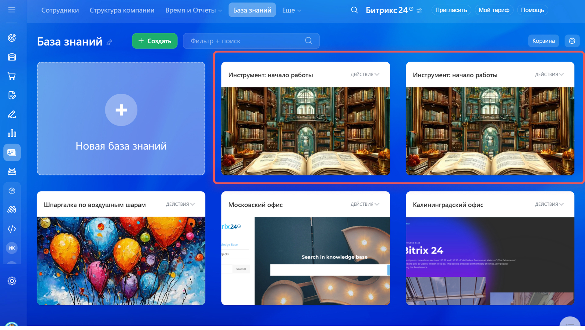 - База знаний компании подходят для материалов, которые нужны всей компании или конкретным отделам. Они доступны в разделе База знаний на компьютере и в мобильном приложении Битрикс24.