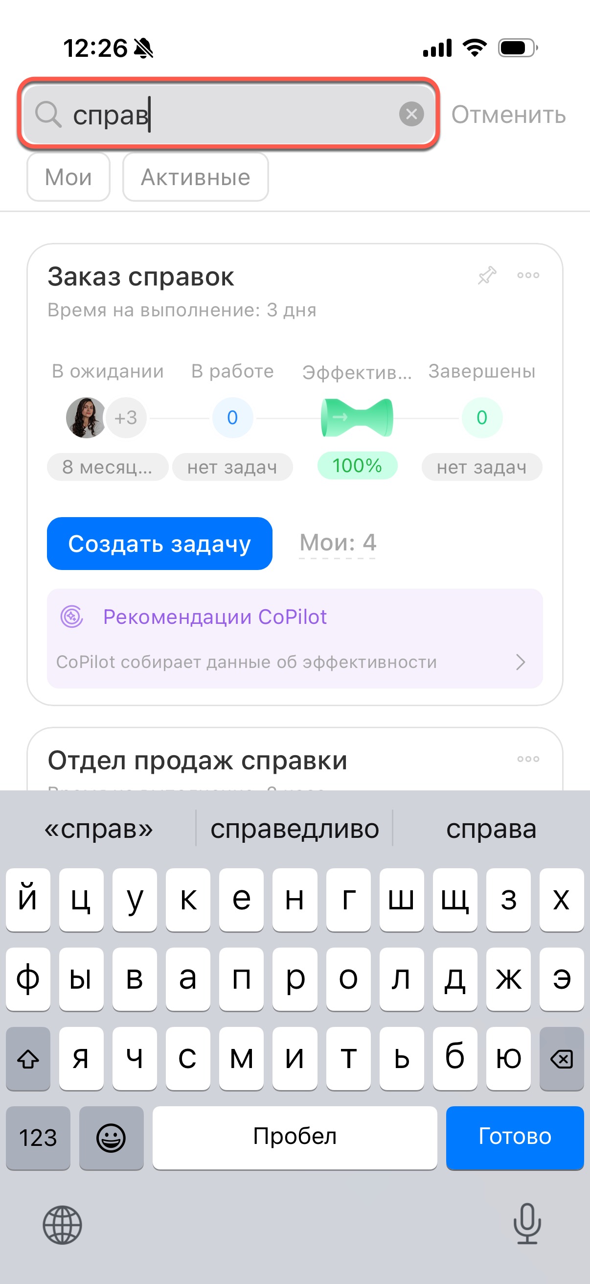 3. Введите название потока. В списке отобразятся все задачи из потока с таким названием, а также задачи, в названии которых есть введенное слово.