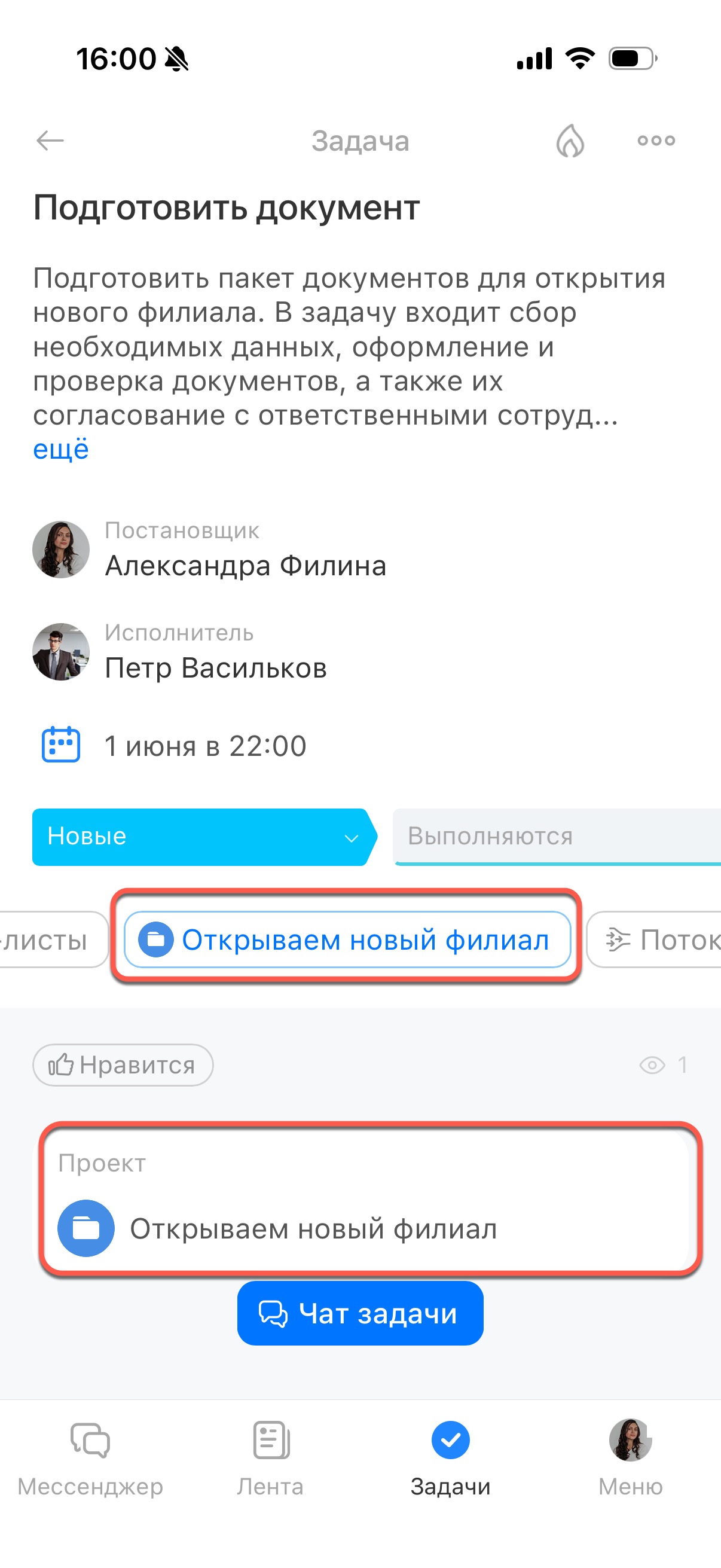 Задачи из скрама попадают в общий список задач — работать с ними в мобильном приложении можно так же, как с обычными. Визуально они ничем не отличаются, поэтому найти задачу из скрама можно по названию скрама или задачи из него.
