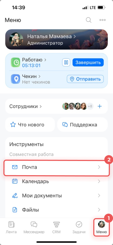 1–2. Перейдите в Меню > Почта.
