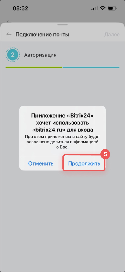 5. Нажмите Продолжить — откроется окно авторизации в выбранном сервисе.