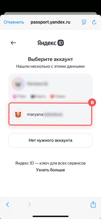 8. Если у вас несколько аккаунтов, выберите нужный.