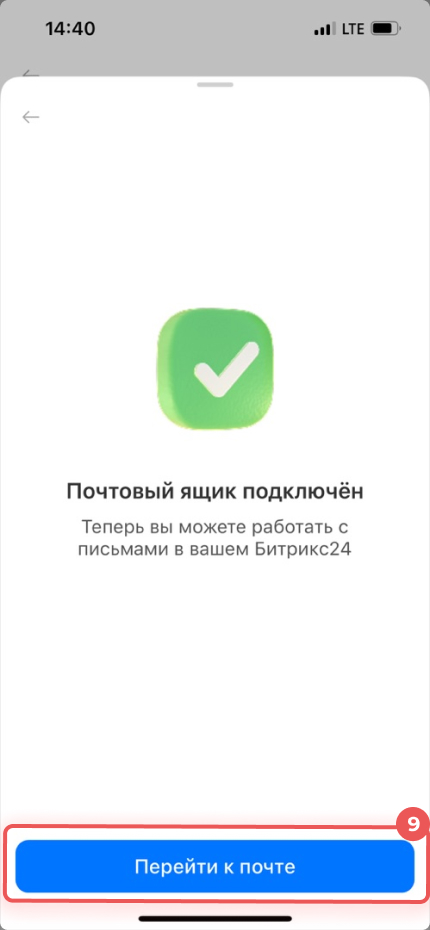 9. Почта подключена — нажмите Перейти к почте.