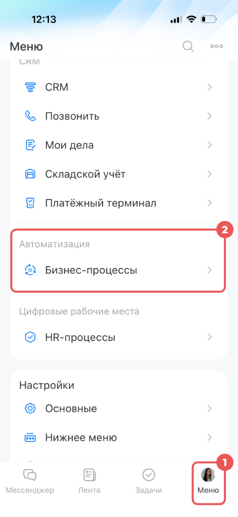 Перейдите в Меню > Бизнес-процессы.