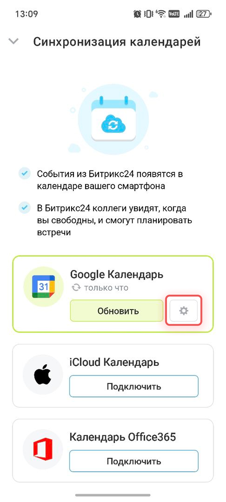 Синхронизация объединяет календари Битрикс24 и Google — все события отображаются в обоих сервисах. Например, если создать встречу в календаре Google, она автоматически появится в Битрикс24. Коллеги увидят, когда вы свободны, и смогут планировать встречи.