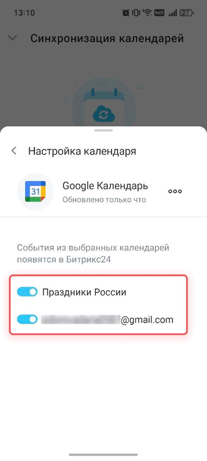 Настроить список календарей. Выберите календари, события из которых хотите видеть в Битрикс24. По умолчанию подключаются все календари Google — например, личный и календарь праздников.