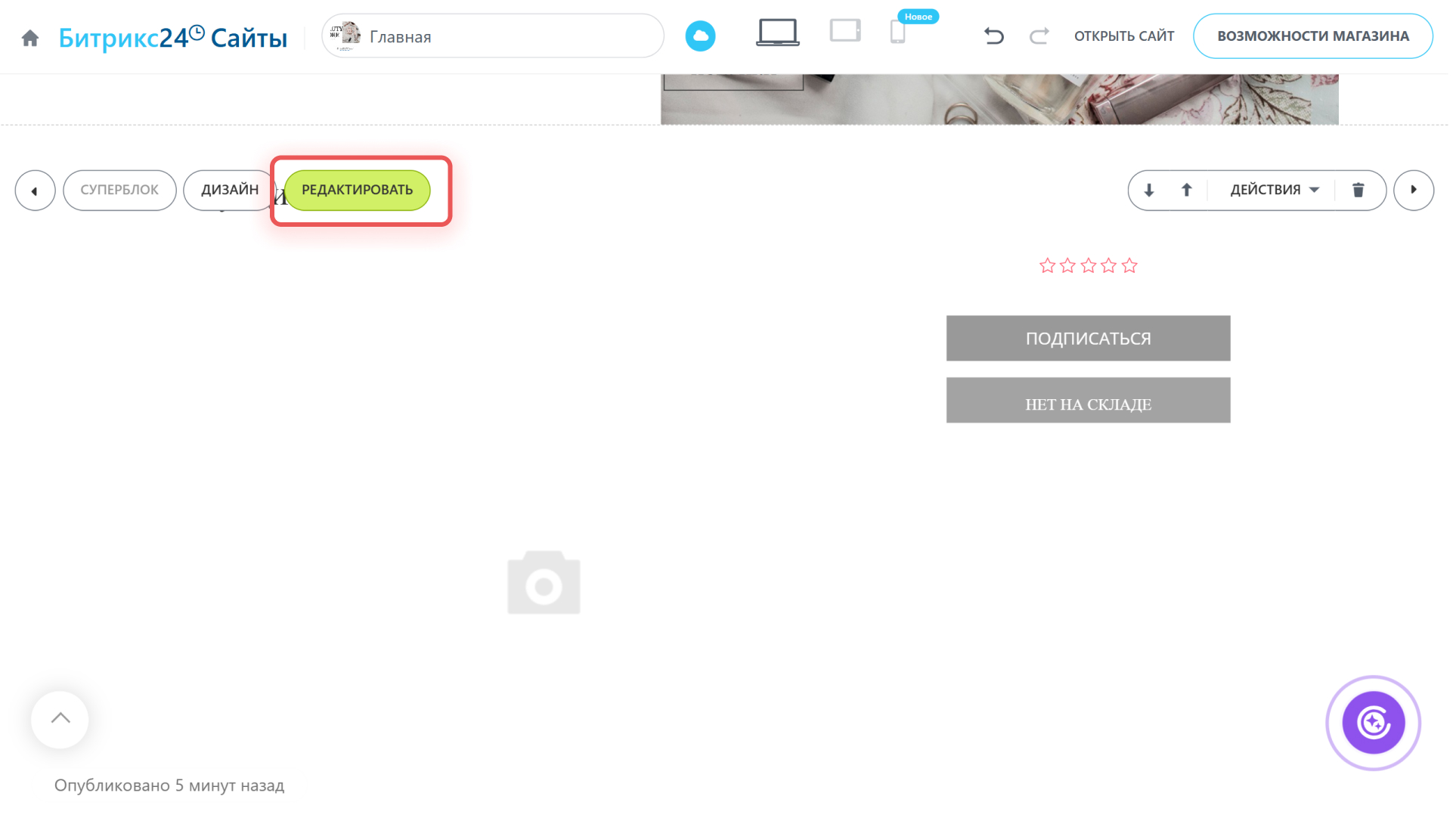 Для перехода к настройкам блока нажмите Редактировать.