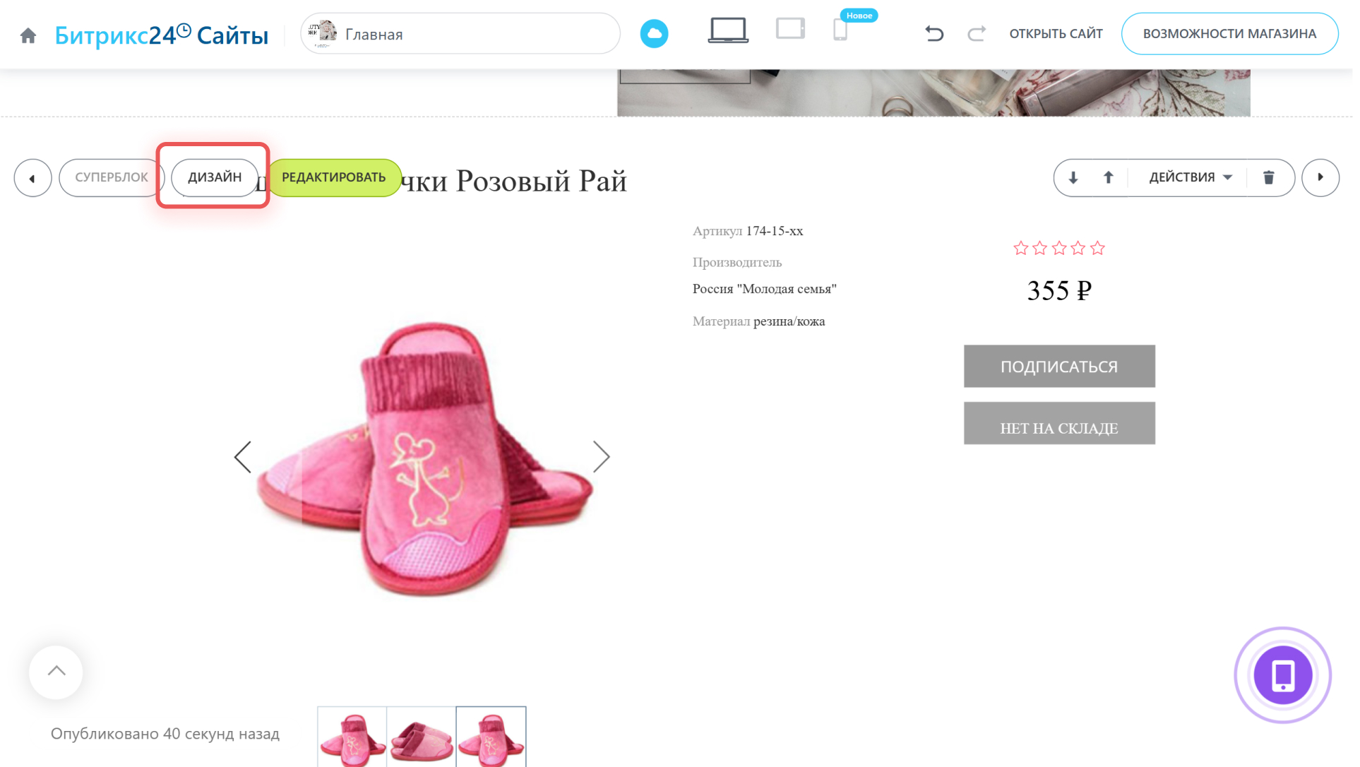 Нажмите на кнопку Дизайн.