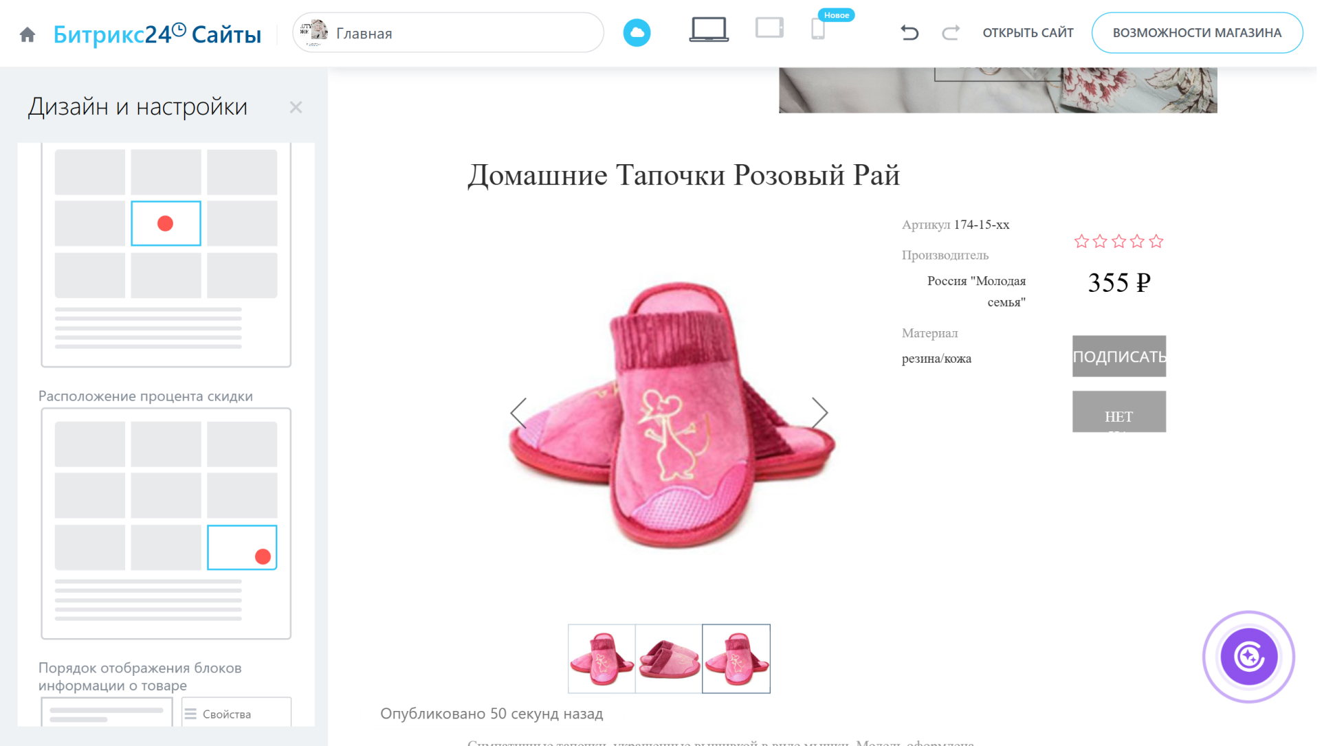 - Расположение меток товара и Расположение процента скидки — где будут показаны в блоке метки и скидки.